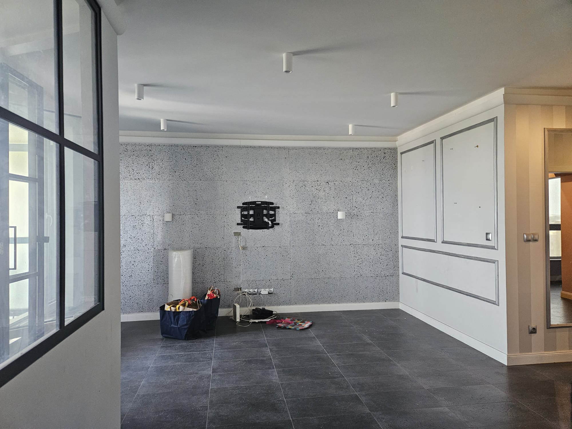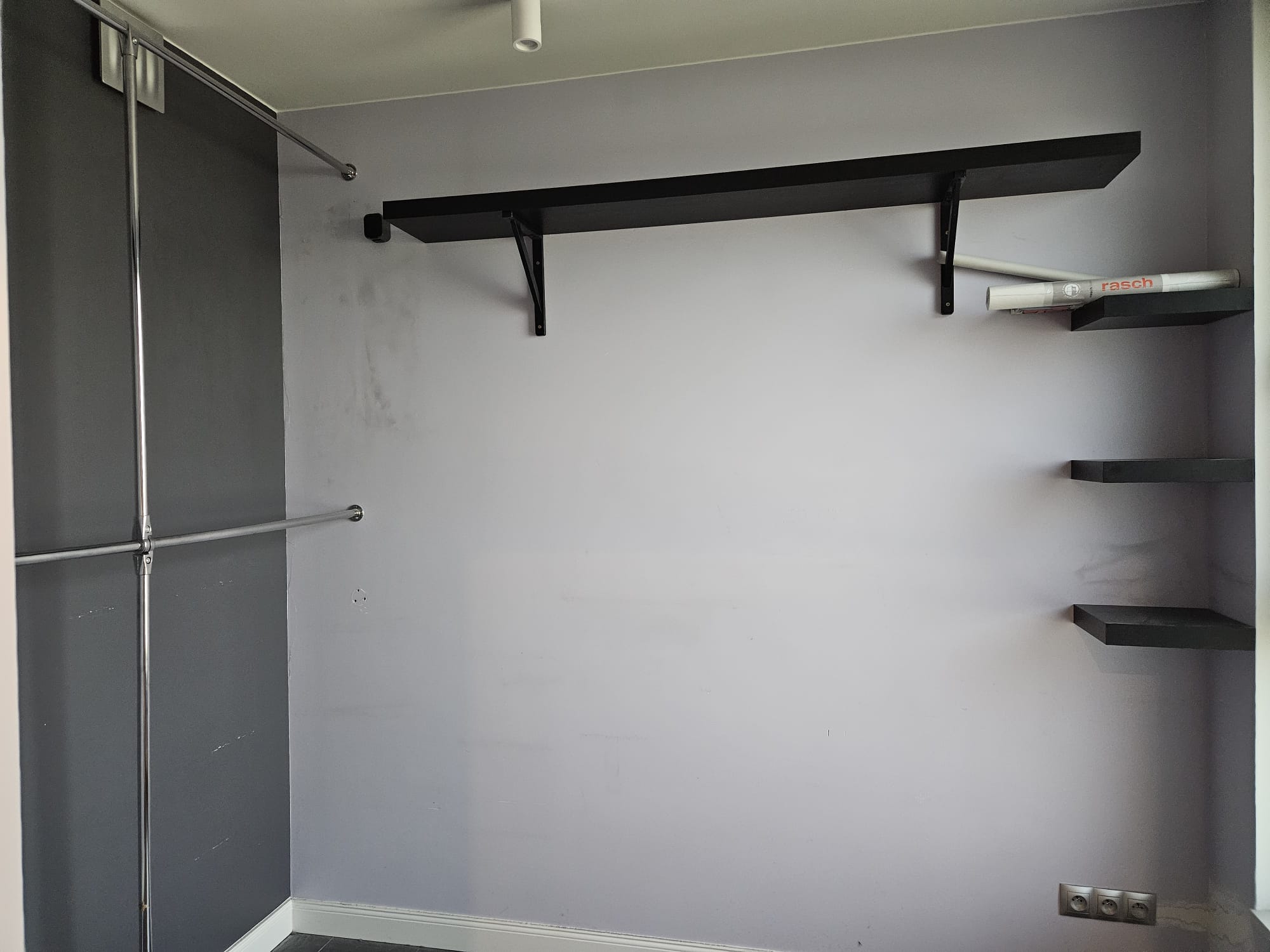 - Prace naprawcze i montażowe: demontaż zbędnych elementów wyposażenia (m.in. półek), szpachlowanie ubytków, naprawę karniszy oraz odświeżenie wybranych ścian i oświetlenia.