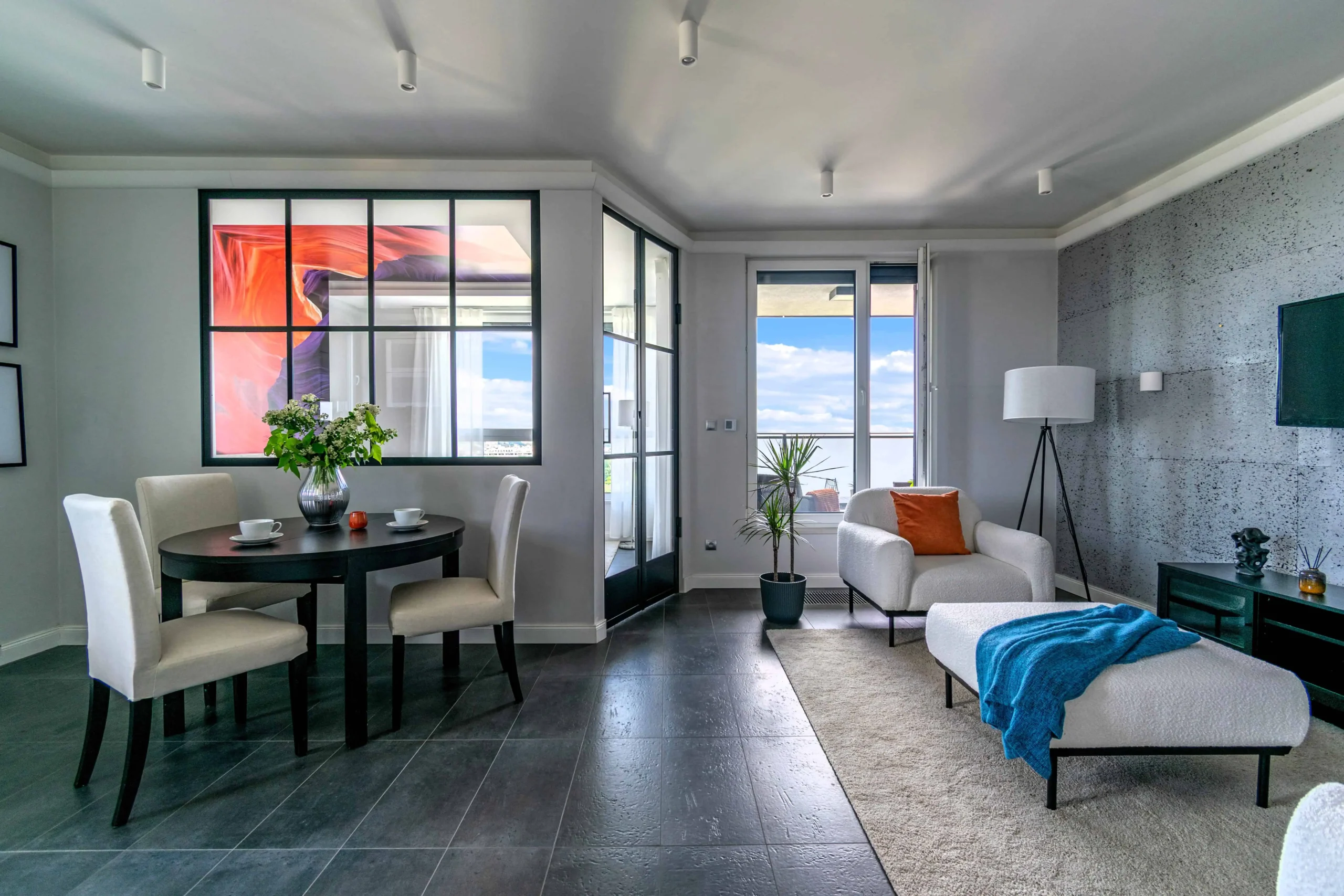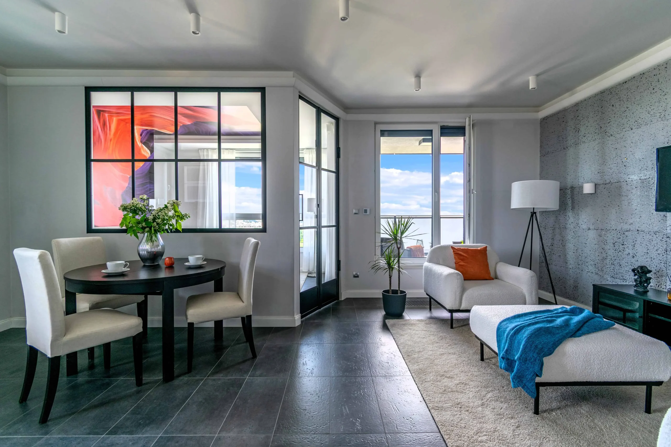 - Final touch: detale (świeże kwiaty, owoce), które ożywiły wnętrze i nadały mu charakter gotowego do zamieszkania